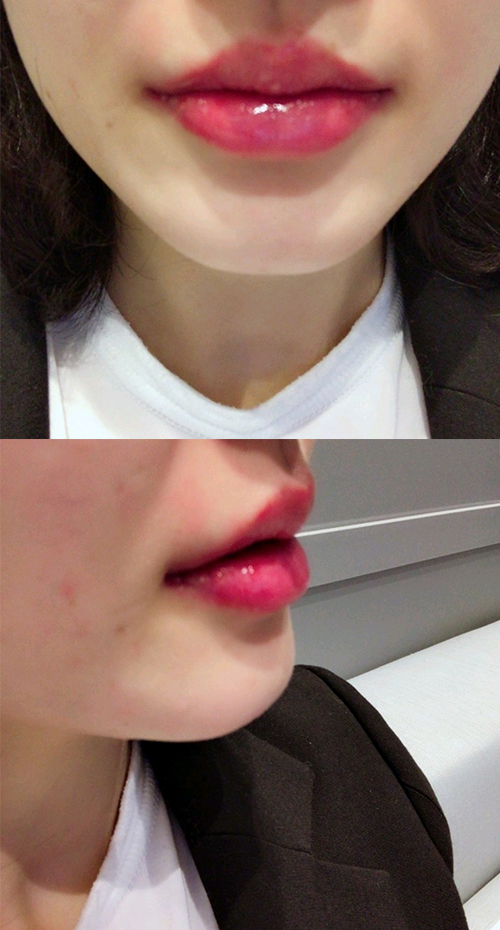 普段から口が大きいのに、ボリューム感がなくて薄く見えるとよく言われていたのですが、形をとてもきれいに整えてくださって、ふっくらして嬉しいです^^ 口角まで上がったので、表情も明るく見えますね♥