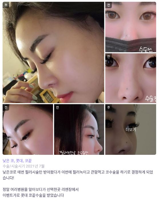 リエンジャン美容外科医院 ★★★★★ 5.0 [바비톡] 코성형 / 2개월차/ 닉네임:꽃슈니이 匿***@ | 2022.01.11 | 19 리엔장성형외과에서 수술 받은 후 강남언니에 업로드한 실제 후기입니다.수술항목: 코성형(콧대,코끝) 口コミ一覧に戻る