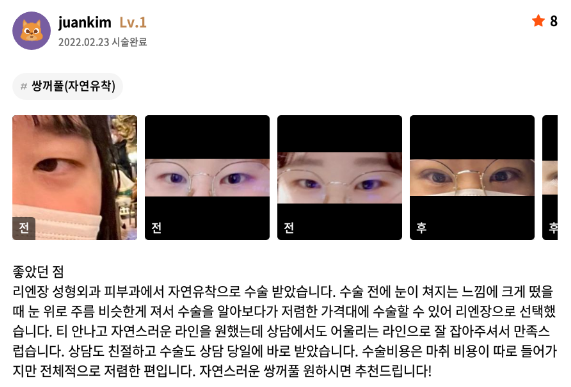 [강남언니] 쌍꺼풀(자연유착) / 닉네임 : juankim
