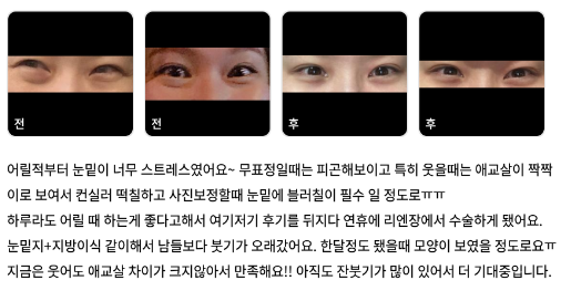 リエンジャン美容外科医院 ★★★★★ 5.0 [강남언니] 눈밑지방재배치 / 2개월차 / 닉네임 : dbgcgghgfd 匿***@ | 2022.03.15 | 17 口コミ一覧に戻る