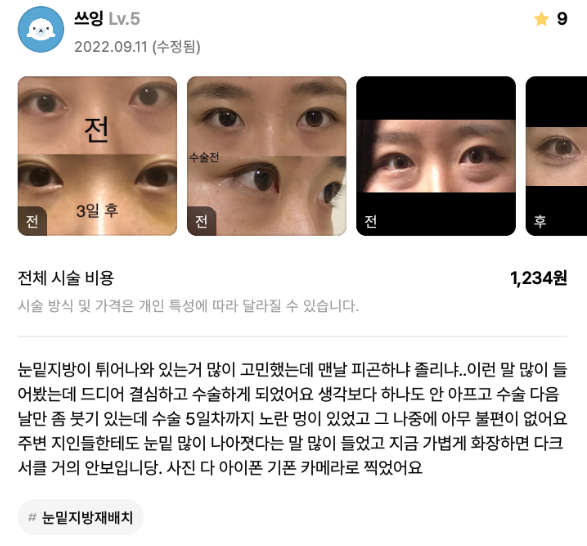 [강남언니] 눈밑재배치 / 1개월차/ 닉네임: 쓰잉