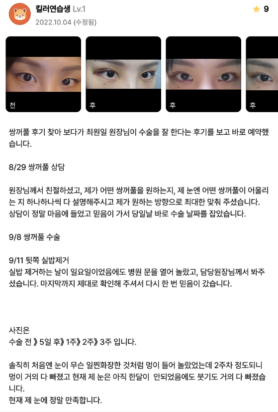 リエンジャン美容外科医院 ★★★★★ 5.0 [강남언니] 자연유착(쌍꺼풀) 1개월차 / 닉네임 : 킬러연습생 匿***@ | 2023.01.09 | 23 口コミ一覧に戻る