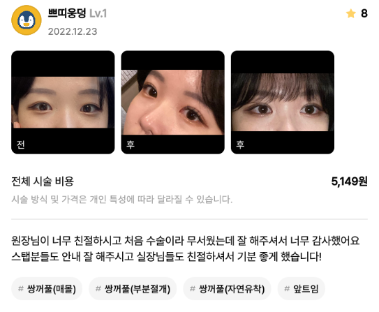 [강남언니] 쌍꺼풀 1개월차 /닉네임 : 쁘띠웅덩