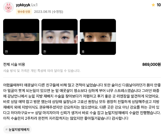 リエンジャン美容外科医院 ★★★★★ 5.0 [강남언니] 눈밑지방재배치 / 1개월차 / 닉네임 : yykkyyk 匿***@ | 2023.06.22 | 21 口コミ一覧に戻る