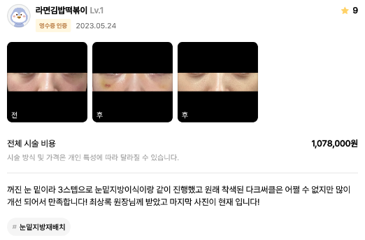 リエンジャン美容外科医院 ★★★★★ 5.0 [강남언니] 눈밑지방재배치 / 1개월차 / 닉네임 : 라면김밥떡볶이 匿***@ | 2023.06.22 | 17 口コミ一覧に戻る