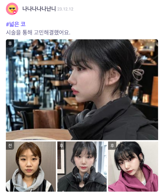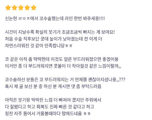 リエンジャン美容外科医院 ★★★★★ 5.0 [바비톡] 코성형 / 1개월차 / 닉네임 : 나나나나나난니 匿***@ | 2024.06.05 | 19 口コミ一覧に戻る